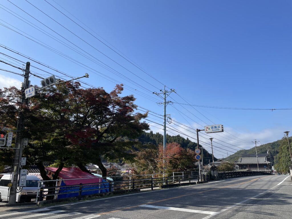 ここから歩いていくと香嵐渓のシンボルの待月橋に近いとの旦那さん情報