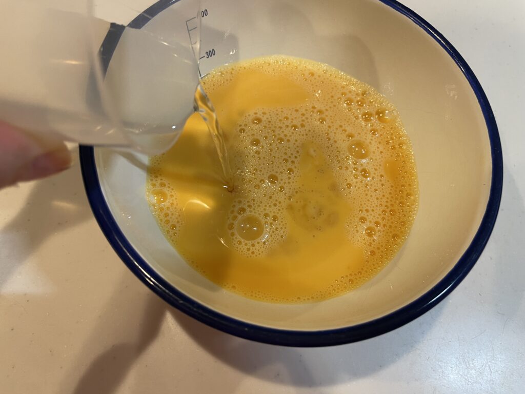 今回卵が160gだったので出汁の量を40ml(g)で合わせます