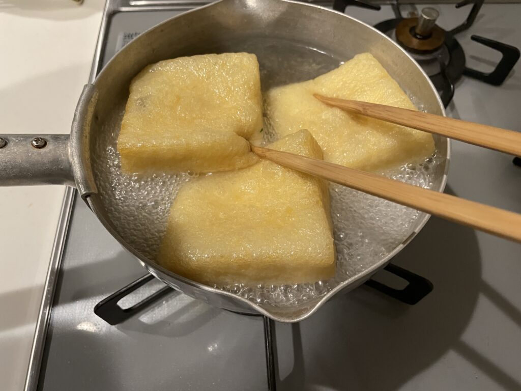 油抜きの方法は色々ありますが、茹でるのがいちばん油も抜けて(お浸しにするときなど)味も染み込みやすくなります