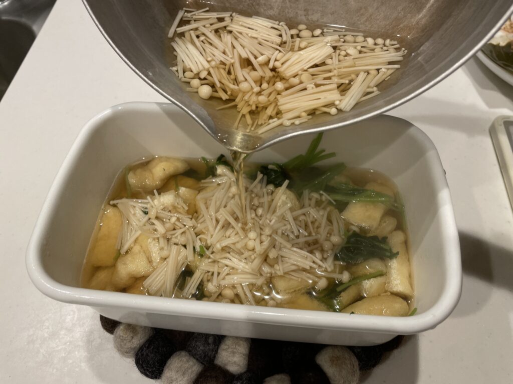 アレンジ自在で、油揚げやえのきの代わりにササミやしめじを入れても美味しいですよ